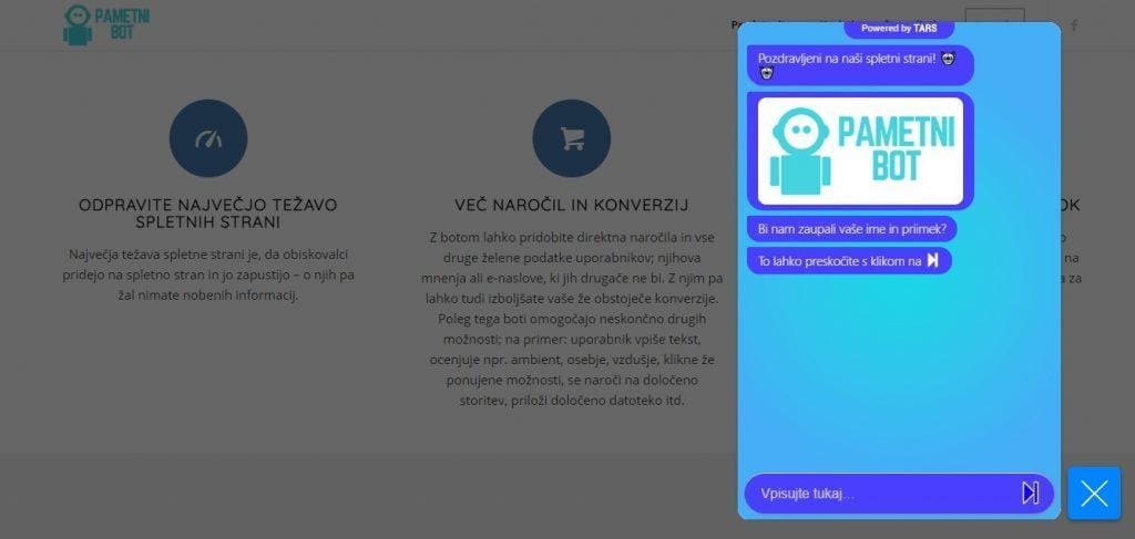 Due to the exceptional opportunity for companies, and because I started using bots myself, I decided to help Slovenian companies with the setup and use of chatbots, so I opened the first Slovenian company called Pametni bot, which offers chatbots for websites and Facebook with international representation from Tars from Bangalore, India. Tars customers come from all over the world and their experiences with the successful use of chatbots can be transferred to the Slovenian market as well. You can also view the Tars case studies.