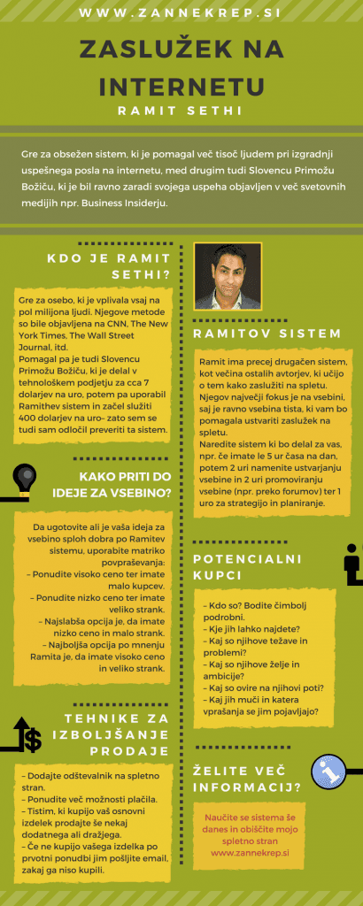 He also helped the Slovenian Primož Božič, who was working at a tech company for approximately $7 per hour, then used Ramit’s system and started earning $400 per hour – which is why I decided to check out this system myself. Primož teaches people how to improve productivity and has his own English blog called Skyrocket Your Productivity. I personally spoke with Primož, who also helped in the creation of this article. Ramit has a quite different system than most other authors who teach about how to make money online. His biggest focus is on content, as it is precisely content that will help you generate income online.