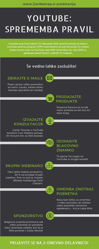 YouTube therefore decided on February 20, 2018 to tighten the rules for entry into the YouTube Partner Program (YPP), which includes Slovenia. The YouTube Partner Program allows creators to earn money directly through YouTube. Instead of 10 thousand views, which were previously sufficient to start earning through YouTube, the new conditions will be stricter. From now on, you will need to have at least 1,000 subscribers on YouTube and at least 4,000 hours of watch time in the last 12 months.